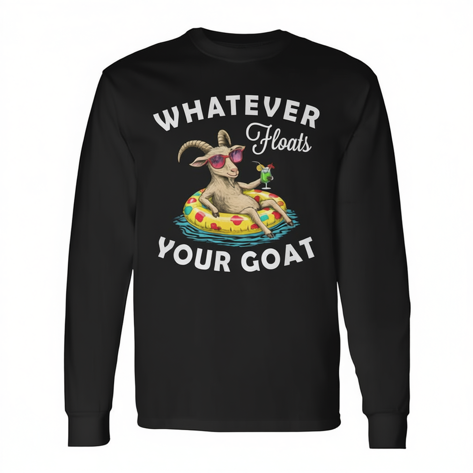 Maglietta a maniche lunghe con stampa divertente di animali che nuotano: Cosa che ti fa galleggiare, a buonissimo conto, la tua capra?