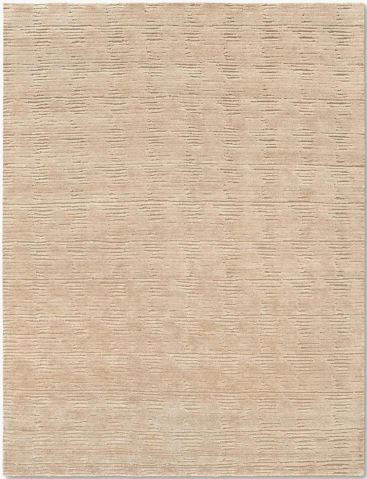 Tappeto in Lana Contemporaneo Color Grano con Design Inciso, Pelo Alto e Basso, Variazione Tonale, Tappeto di Lusso per Soggiorno