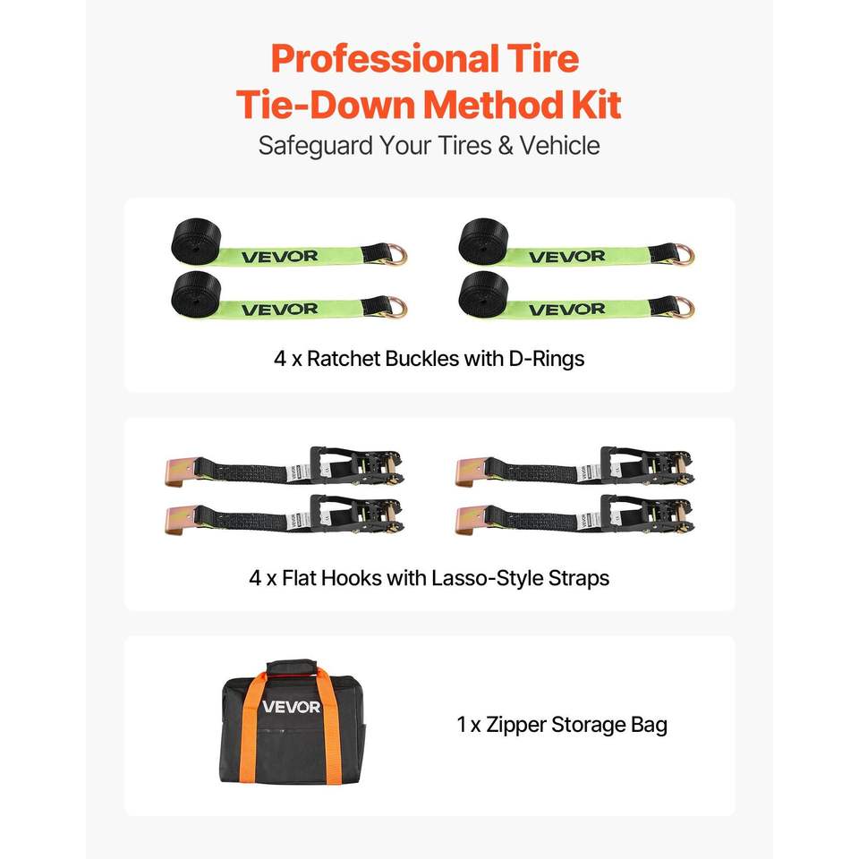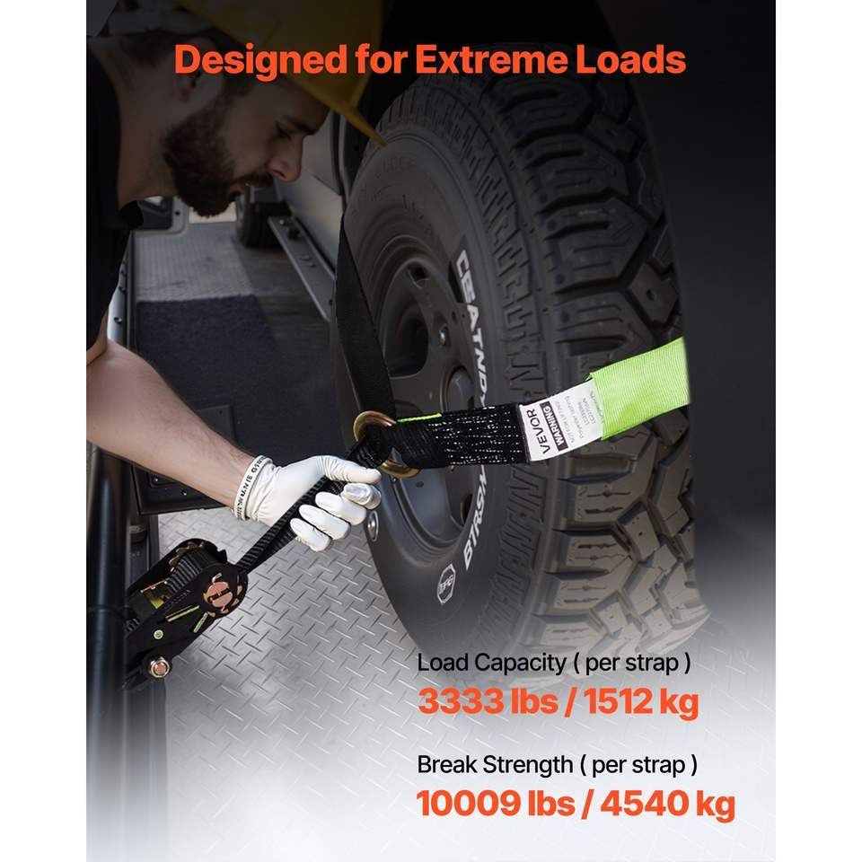 Kit di Ancoraggio Ruote con Cinghie a Gancio Piatto per Rimorchio, Cinghie di Fissaggio Auto, Resistenza al Rottura 10009 Libbre, Cinghie a Cricchetto