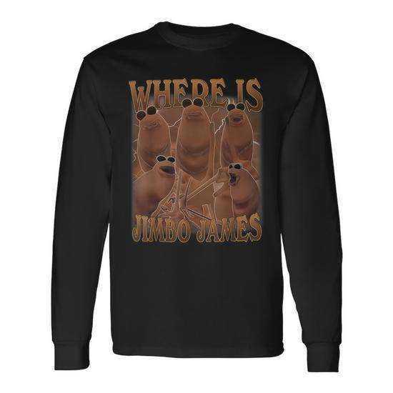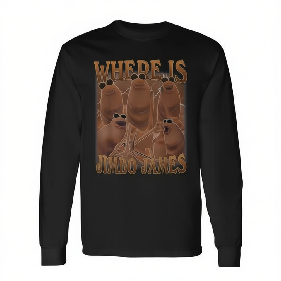 T-shirt a maniche lunghe con stampa digitale promozionale Where Is Jimbo James Marcus The Worm Meme, girocollo, unisex, per adulti