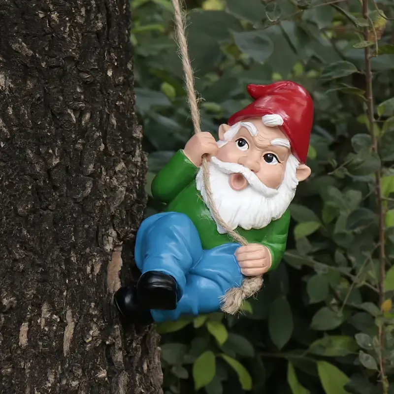 Stravagante statua di gnomo da arrampicata-resina resistente, vestito rosso e verde, ideale per decorazioni natalizie da giardino, uso interno/esterno