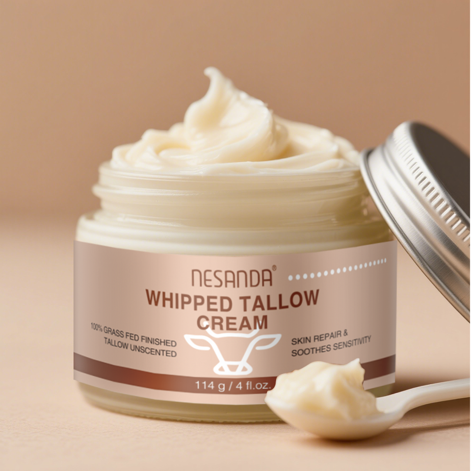 Crema di sego di manzo montata 100% con urlo E olio di mandorle crema idratante per il viso con vitamina E crema per la riparazione della pelle arricchita