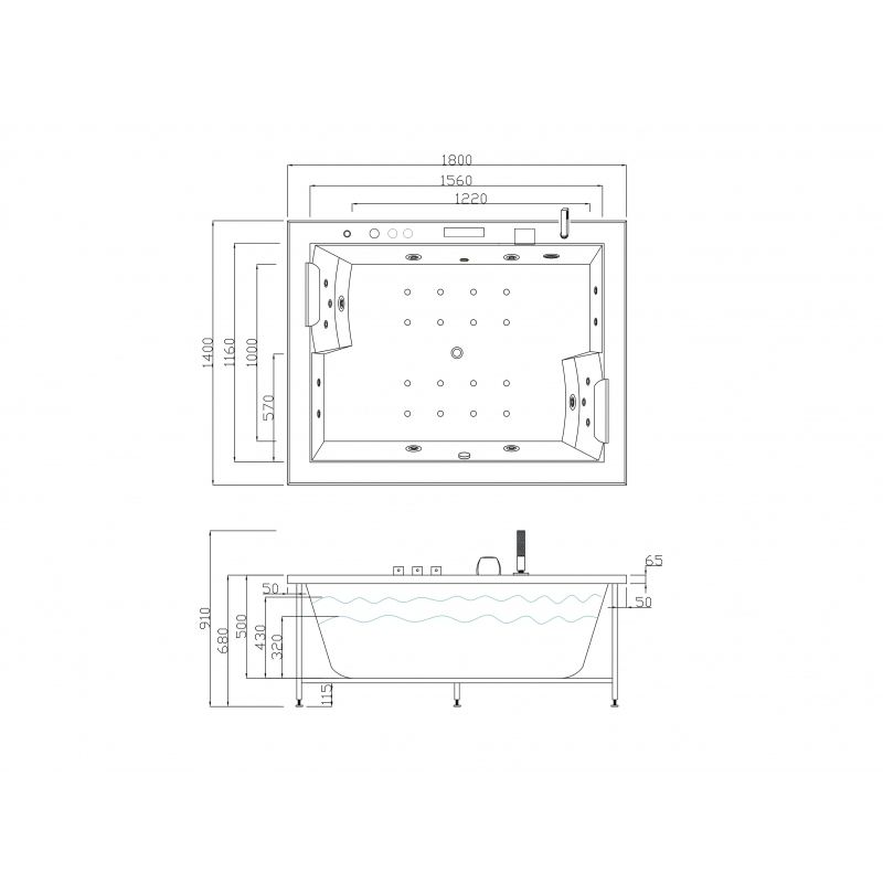 Vasca Idromassaggio per 2 BABILON Bianca XXL Autoportante Forma Rettangolare con Funzione Massaggio ad Aria e Immersione Completamente Attrezzata in ABS