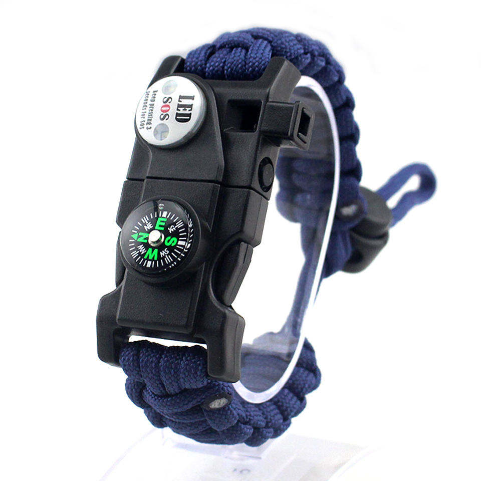 Whistle LED light Clip cacciavite ad ago, termometro, lama, bussola braccialetto di sopravvivenza di emergenza