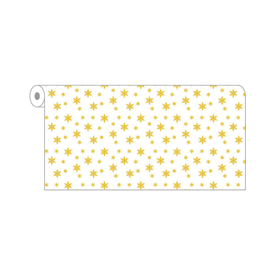White 1.20x50m Estrellas Gold Print Tablecloth Roll Novotex TNT B2B