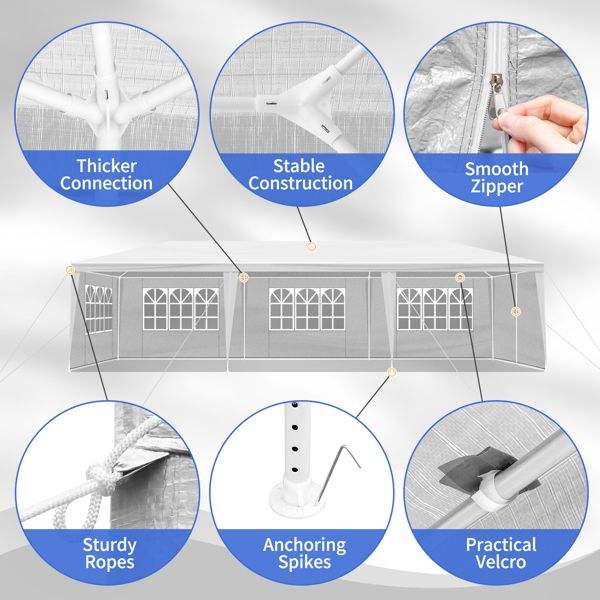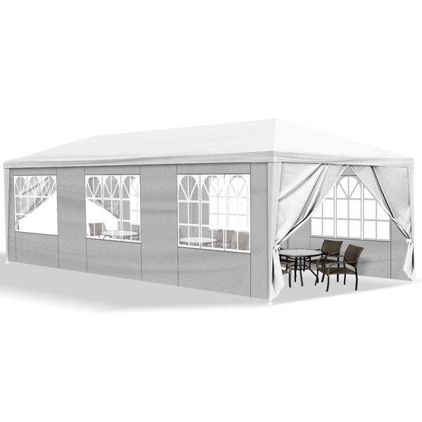 White 10'x30' Outdoor Wedding & Party Tent with 8 Removable Sidewalls Waterproof Canopy Patio Gazebo