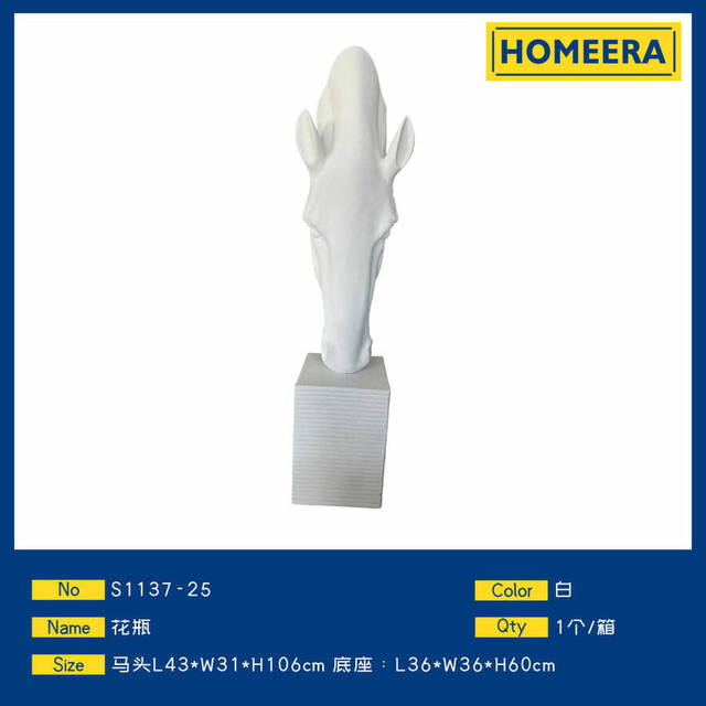 White 106cm Tall Horse Head Fiberglass Vase Sculpture with Base Wholesale Decor Item