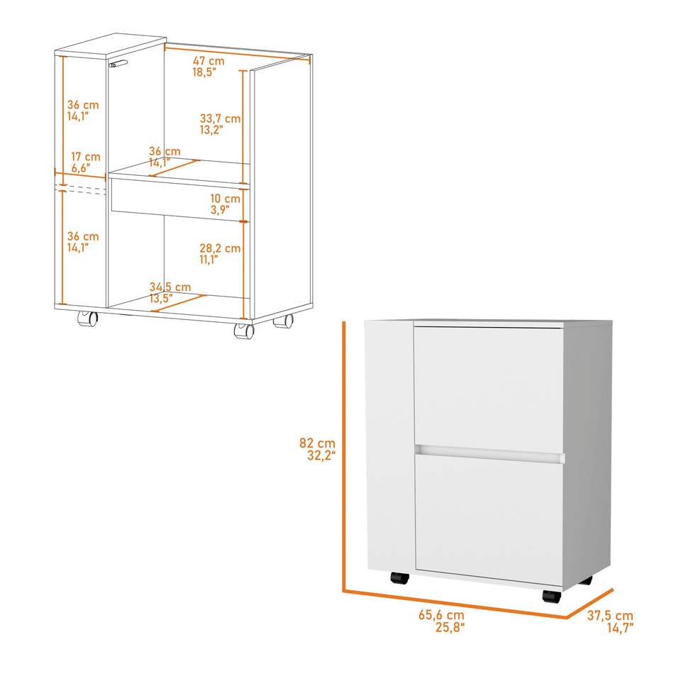 Carrello bar bianco a 2 armadietti