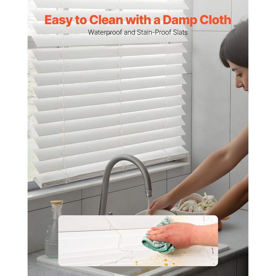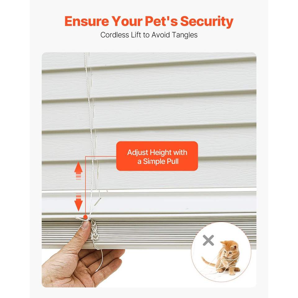White 2\" Faux Wood Cordless Window Blinds and Shades 34.5\" W X 60\" H