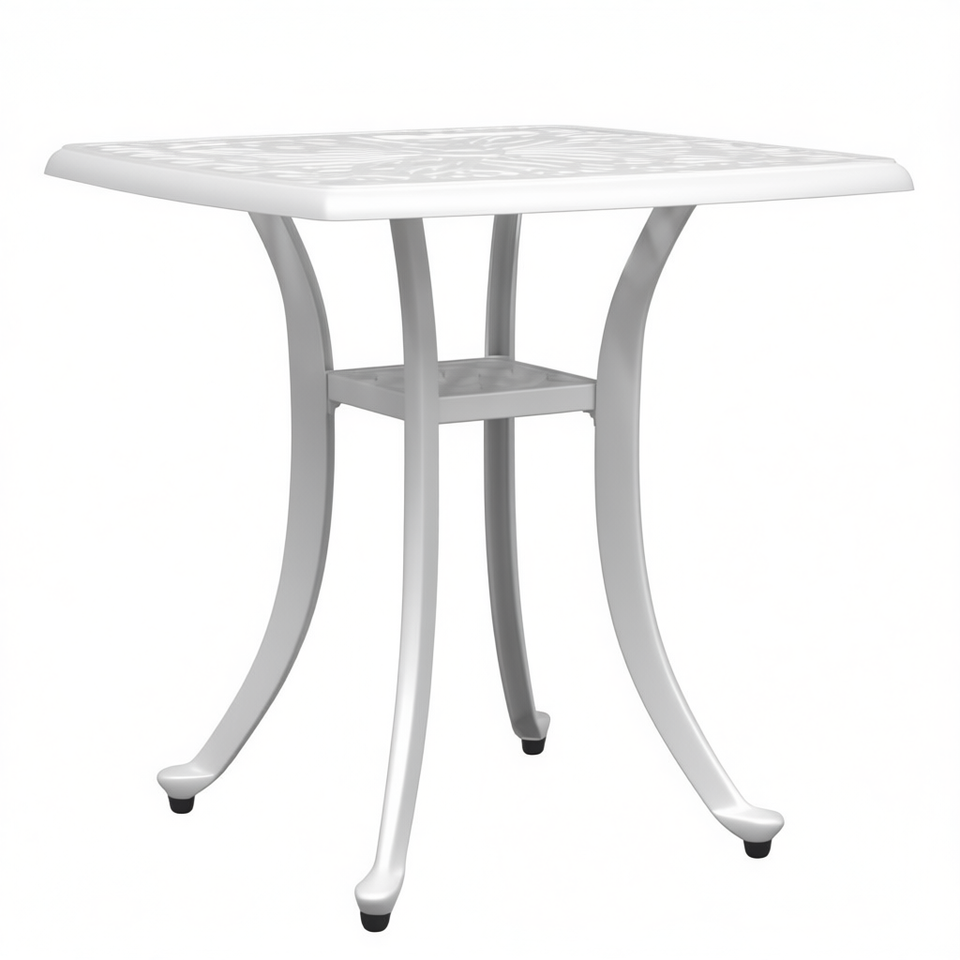 White Cast Aluminum Patio Table 20.9 In Square Outdoor Use Durable Contemporary Design
