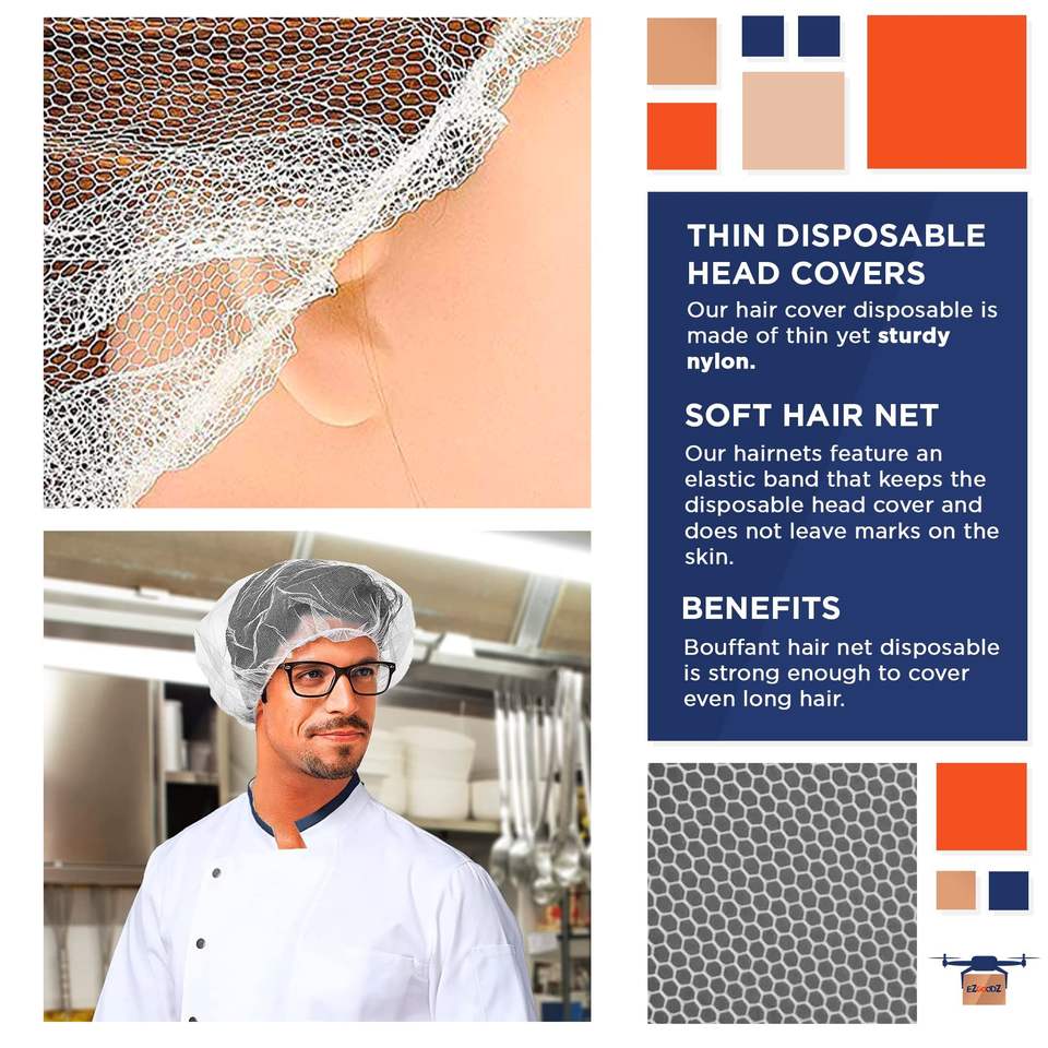 Capelli da 21 pollici bianchi monouso Unisex in Nylon leggero Bouffant confezionati 1000 cucina Food Service modello traspirante