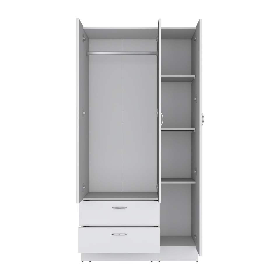White 3-Door Wardrobe with Mirror Two Drawers Four Shelves Hanging Bar