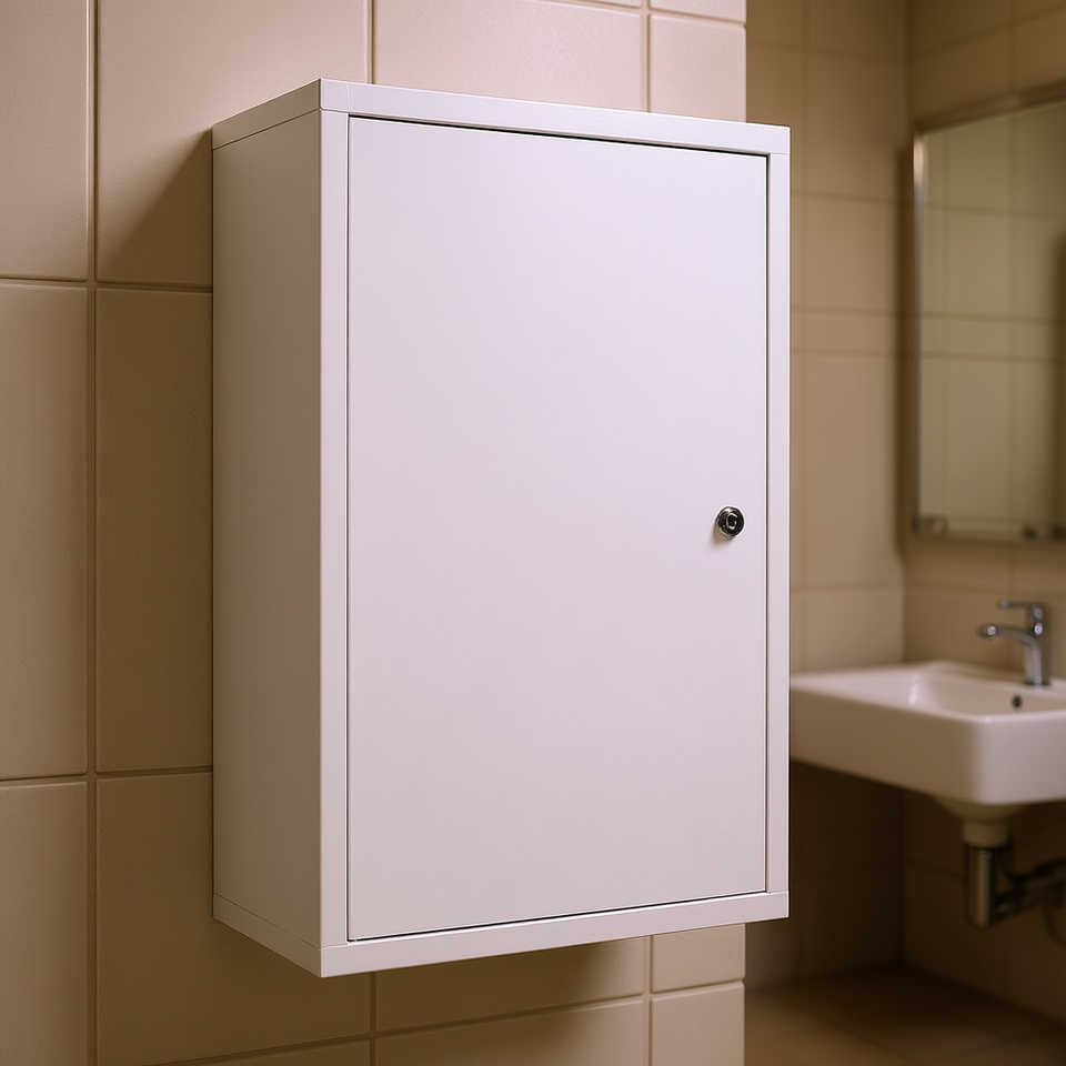 White Steel Medicine Cabinet 24x16 Lockable Wall Mount Bathroom Storage