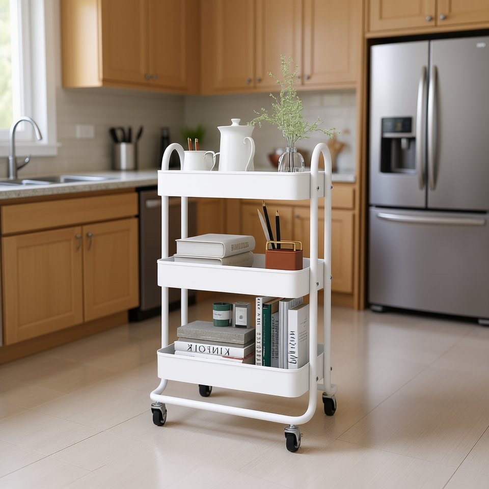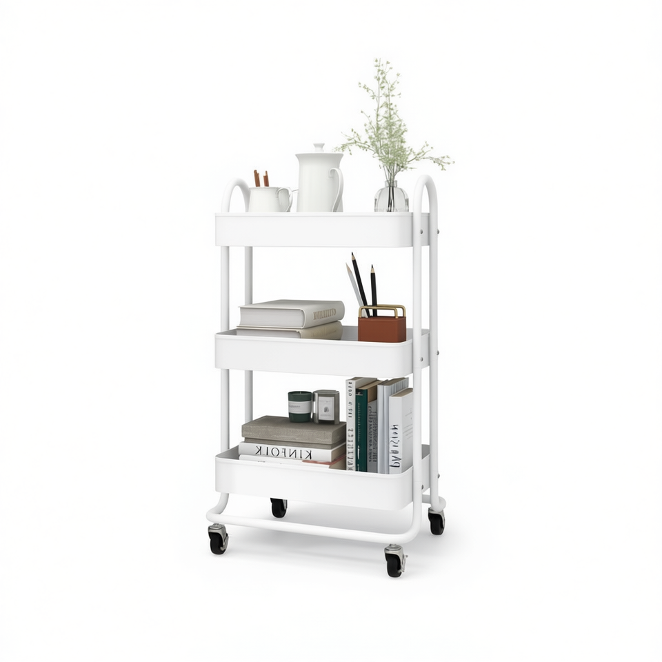 Carrello a 3 Ripiani Bianco 16.9x13.4x31.1 Pollici in Acciaio, Scaffale Portaoggetti da Cucina dal Design Minimalista Autoportante