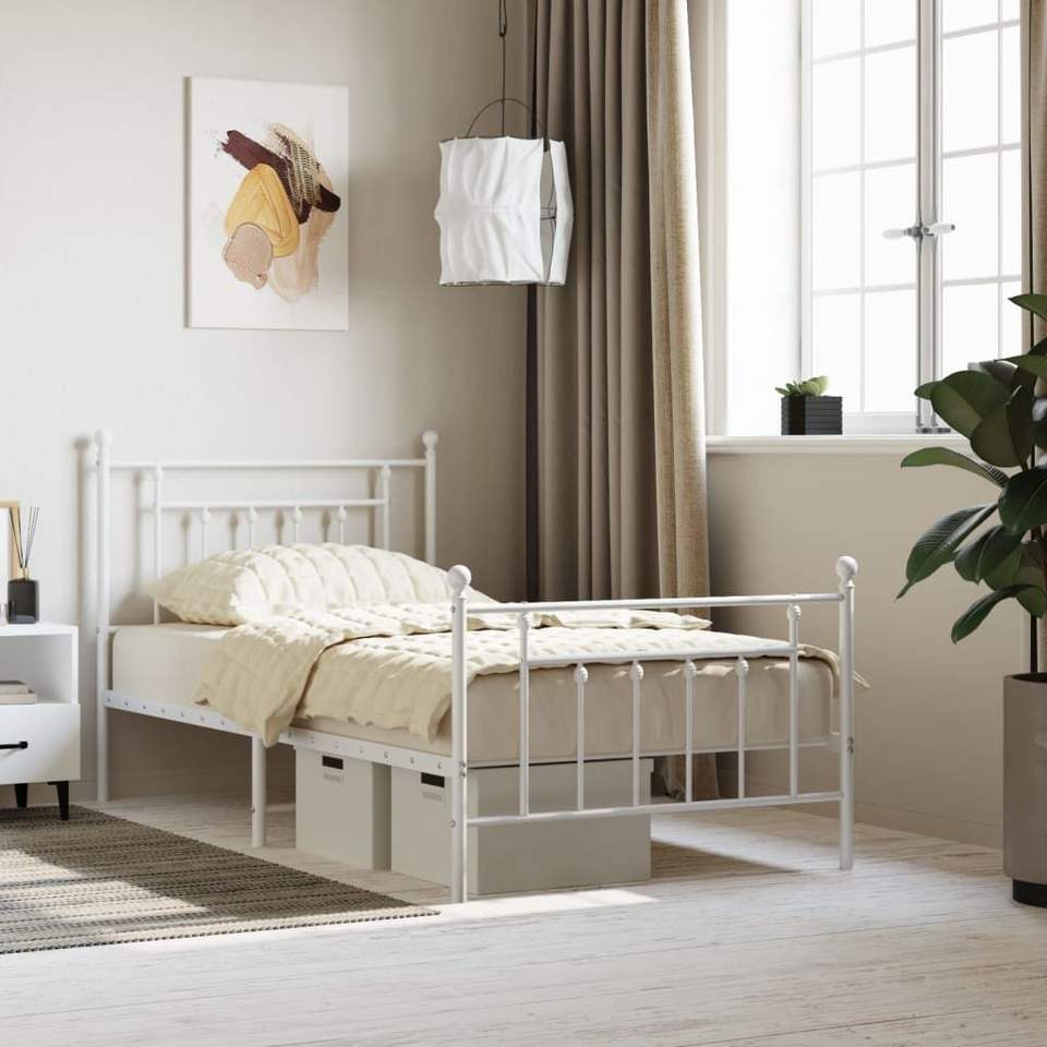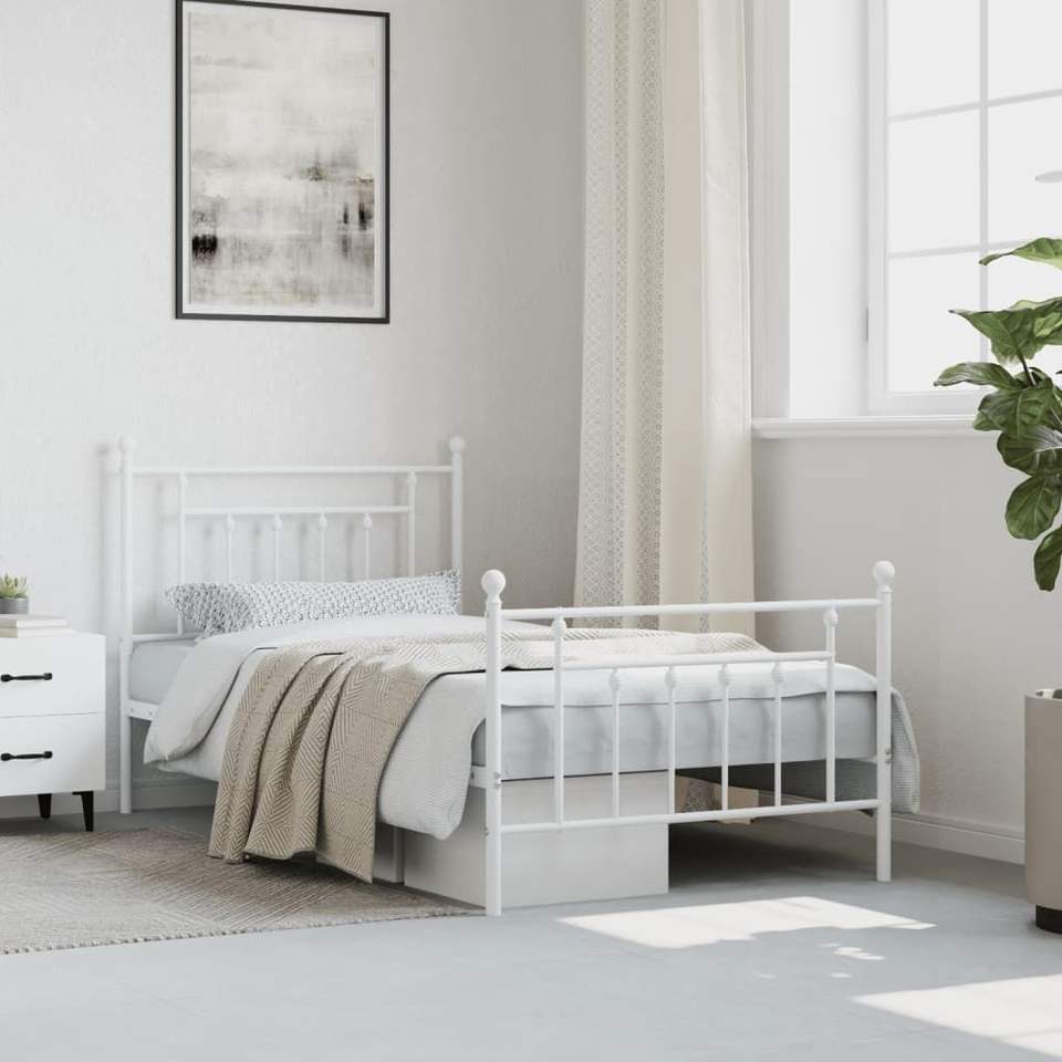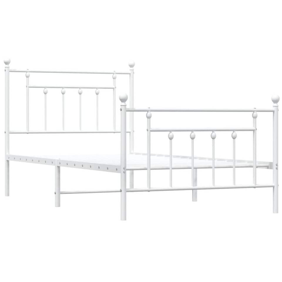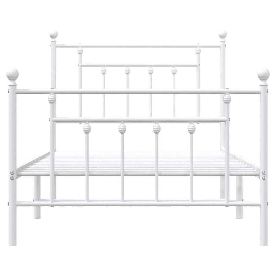 White 39.4"x74.8" Metal Bed Frame with Footboard Without Mattress