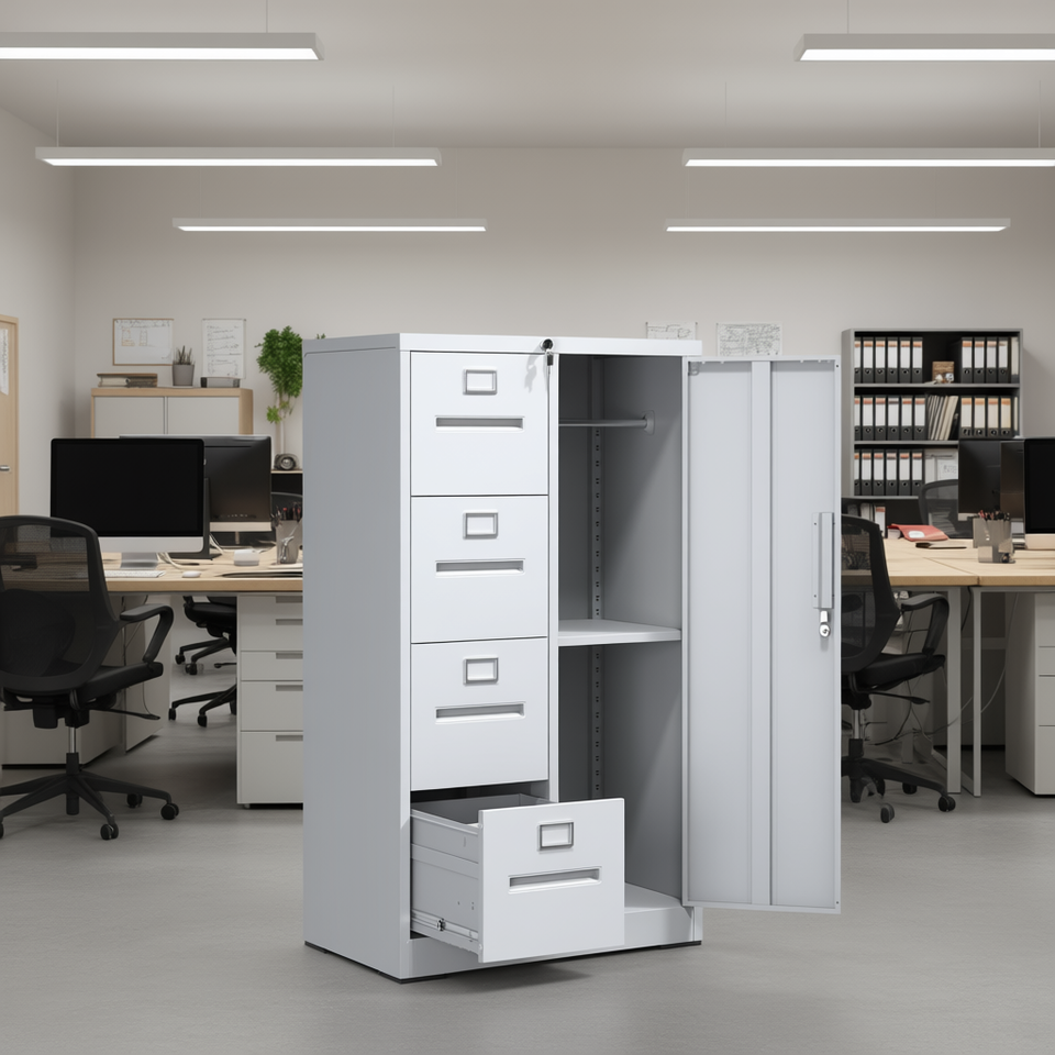 Armadietto Verticale in Acciaio Bianco con 4 Cassetti e 1 Porta con Serratura, Sistema di Archiviazione per Ufficio