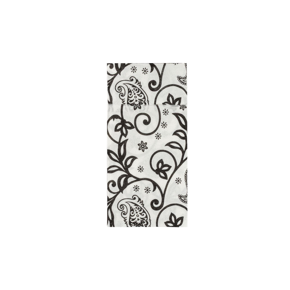 White 40x40cm Cachemir Print Point-to-Point Kanguro Cutlery Pocket Napkin 960pcs B2B