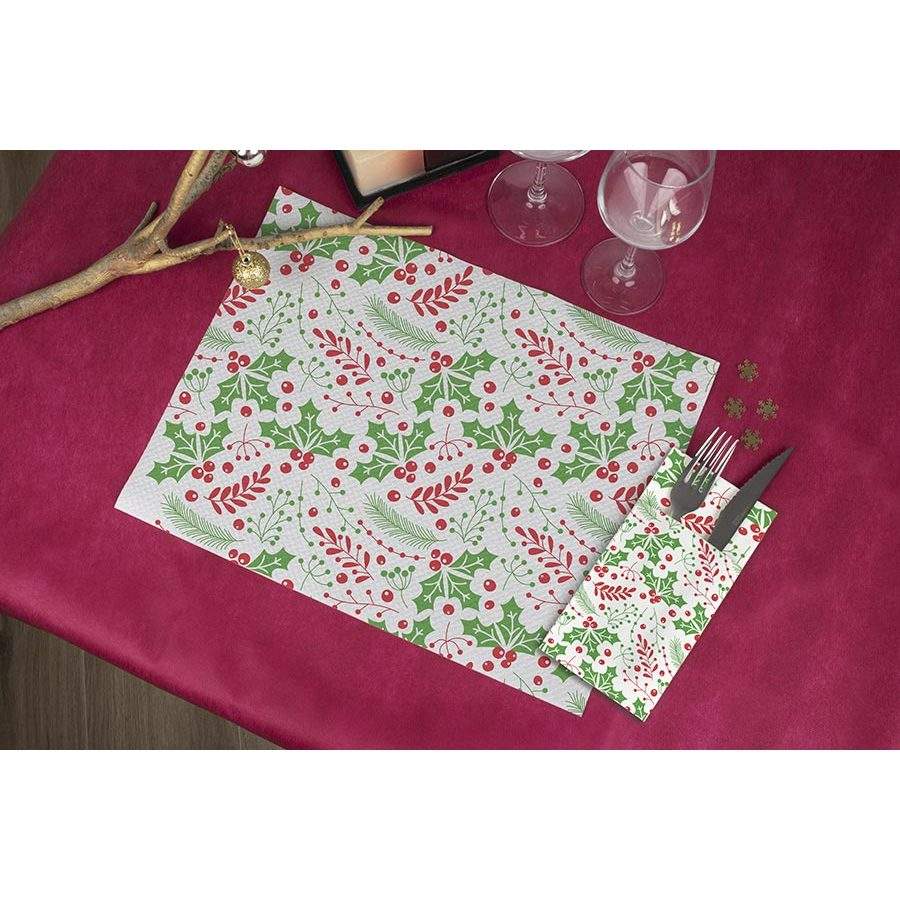 Tovaglioli Tascabili Bianchi 40x40cm con Stampa Verde Murdago, Taglio Point-to-Point Kanguro, 480 Pezzi, B2B
