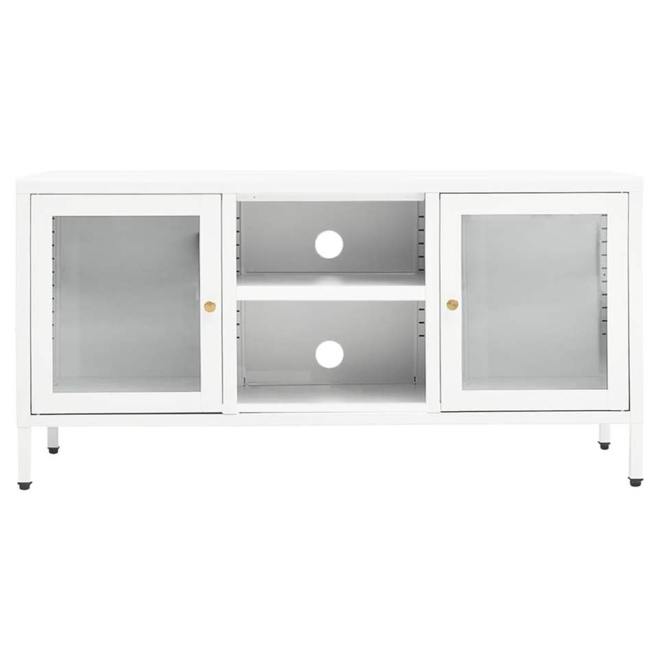 White 41.3"x13.8"x20.5" Steel and Glass TV Stand Modern Design for Home Entertainment