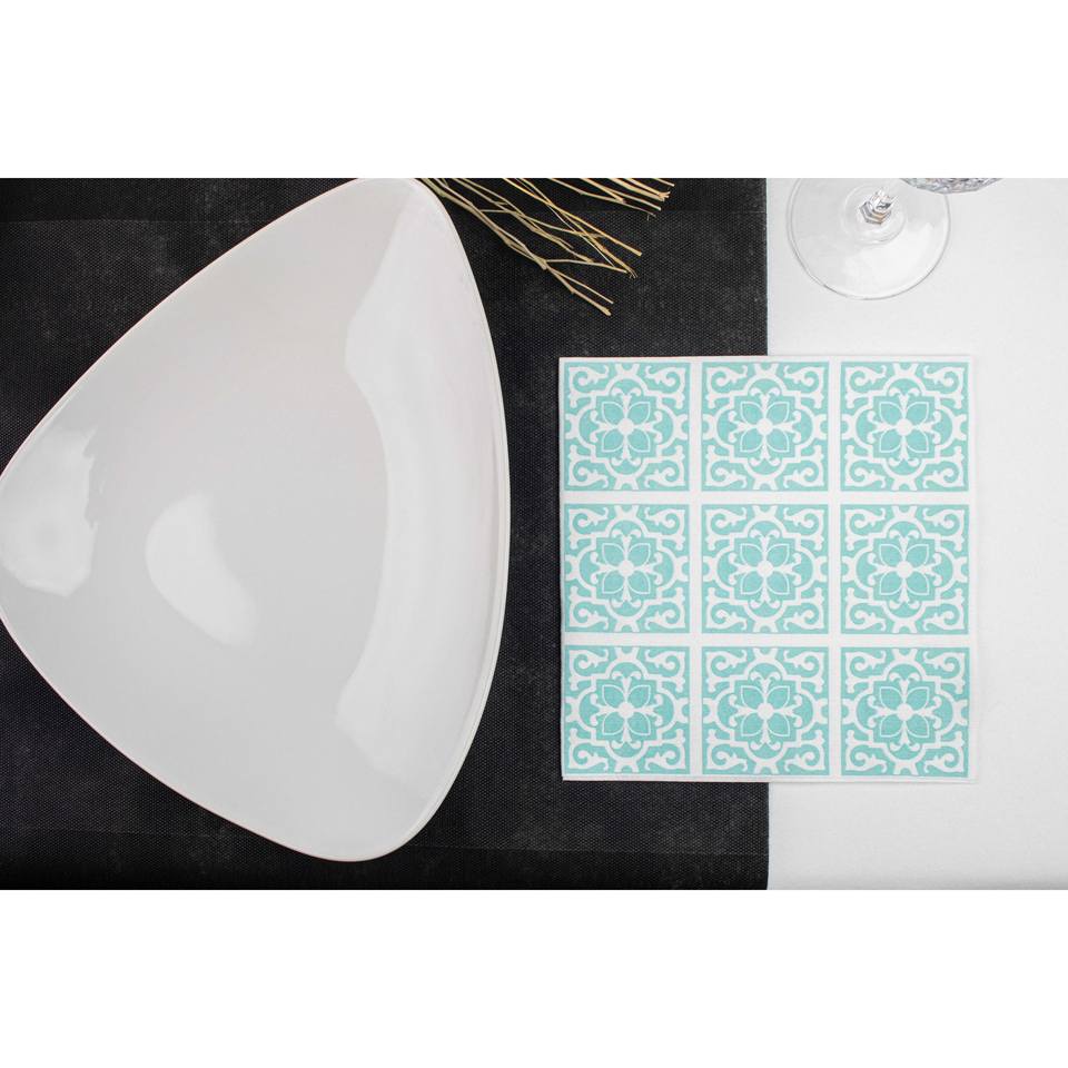 White 48x48cm Azulejo Aquamarine Print Napkins Bambutex Natural 300pcs B2B