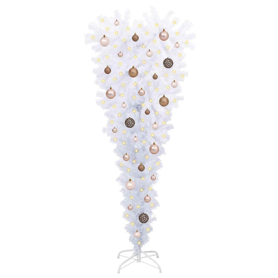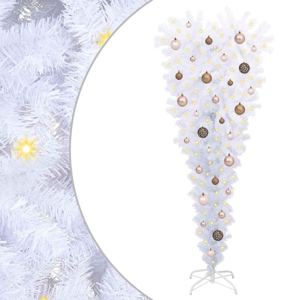 Albero di Natale Artificiale Bianco 150 cm in PVC e Acciaio con Luci Natalizie