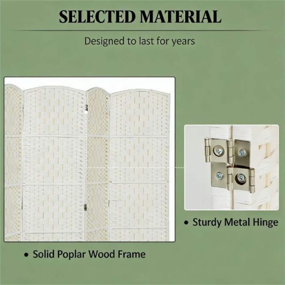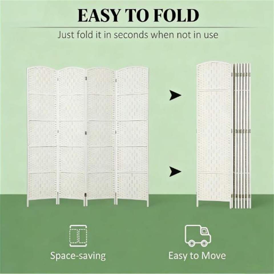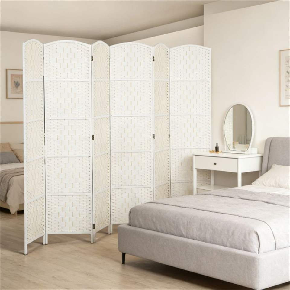 Paravento Pieghevole a 6 Ante Bianco e Divisorio per Ambienti