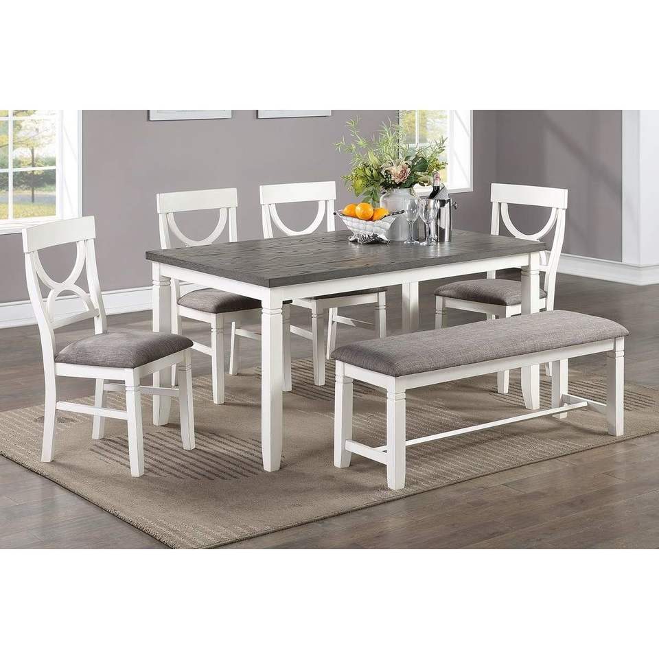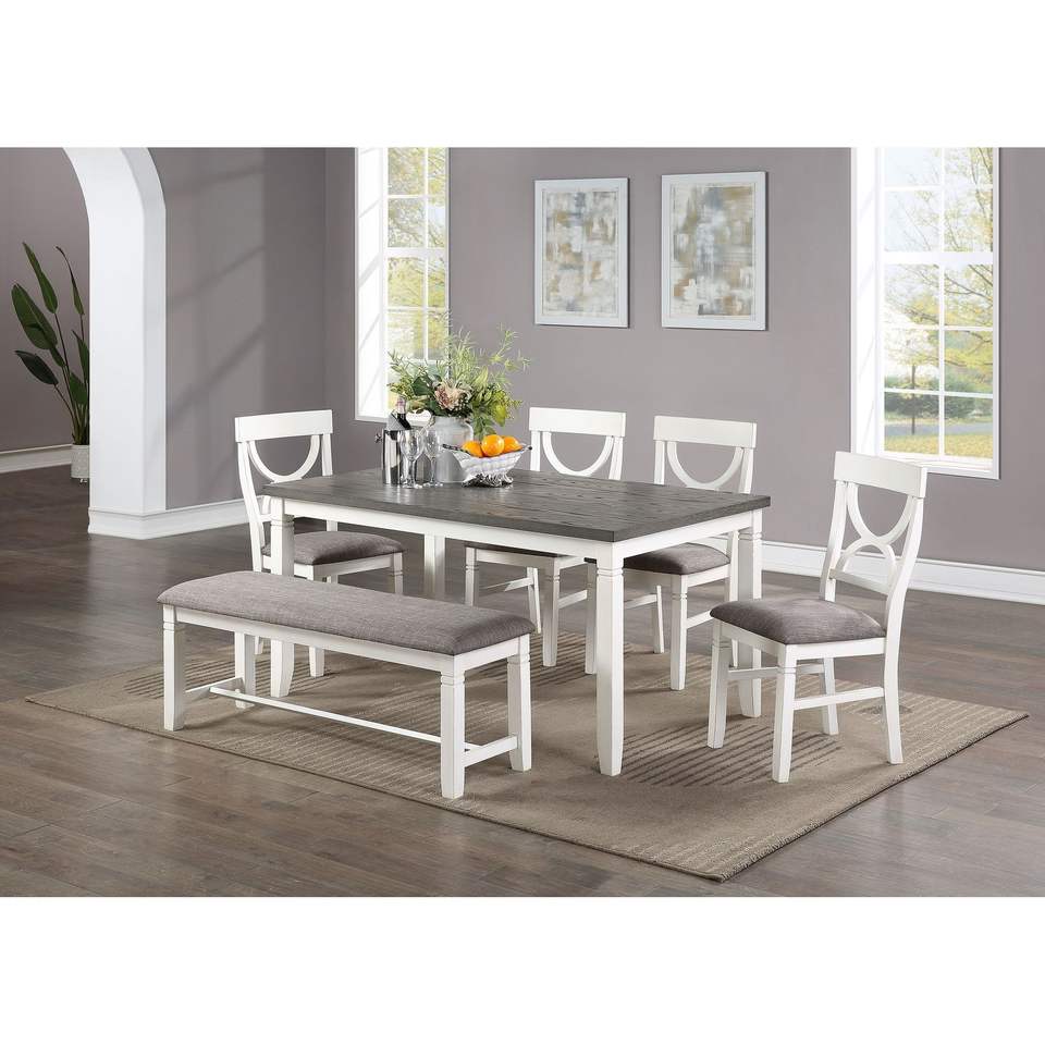 White 6pc Dining Room Set Table 4 Side Chairs a Bench Made From Rubberwood MDF