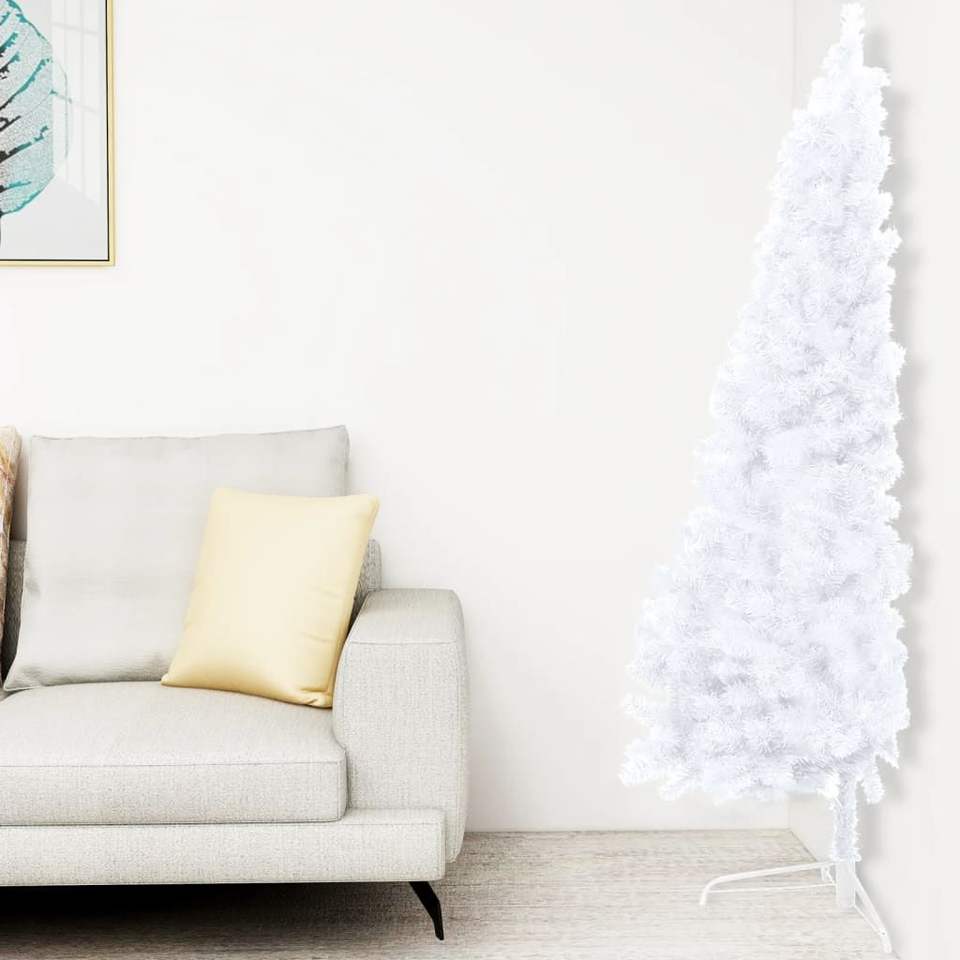 Albero di Natale Artificiale Bianco da 210 cm Semi-Illuminato con Set di Palline per Decorazioni Murali e Feste