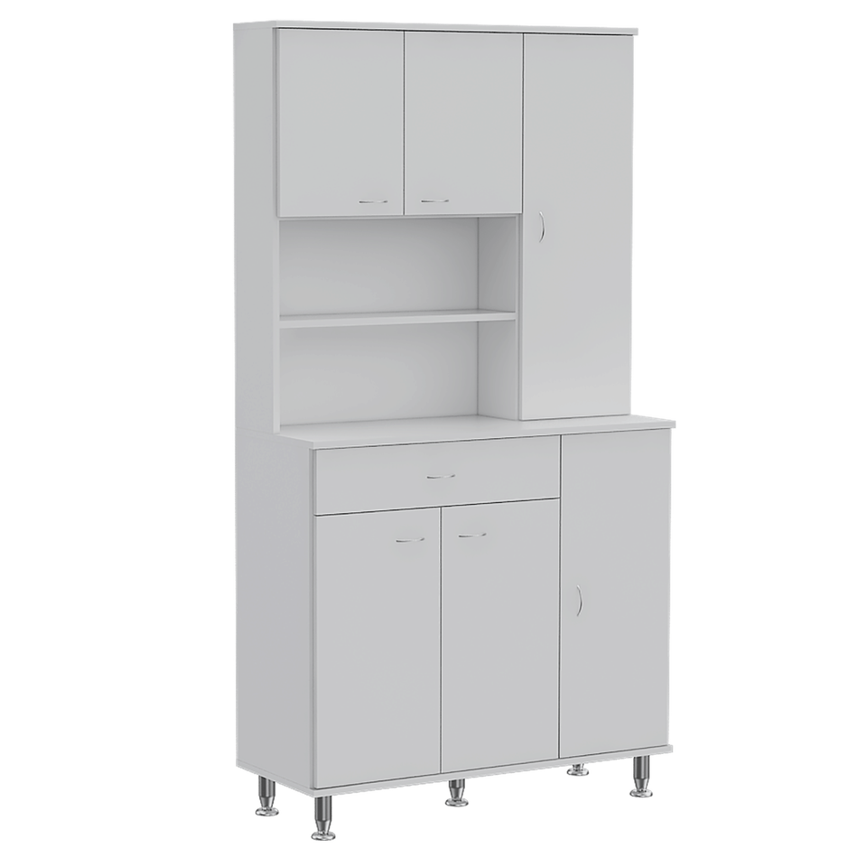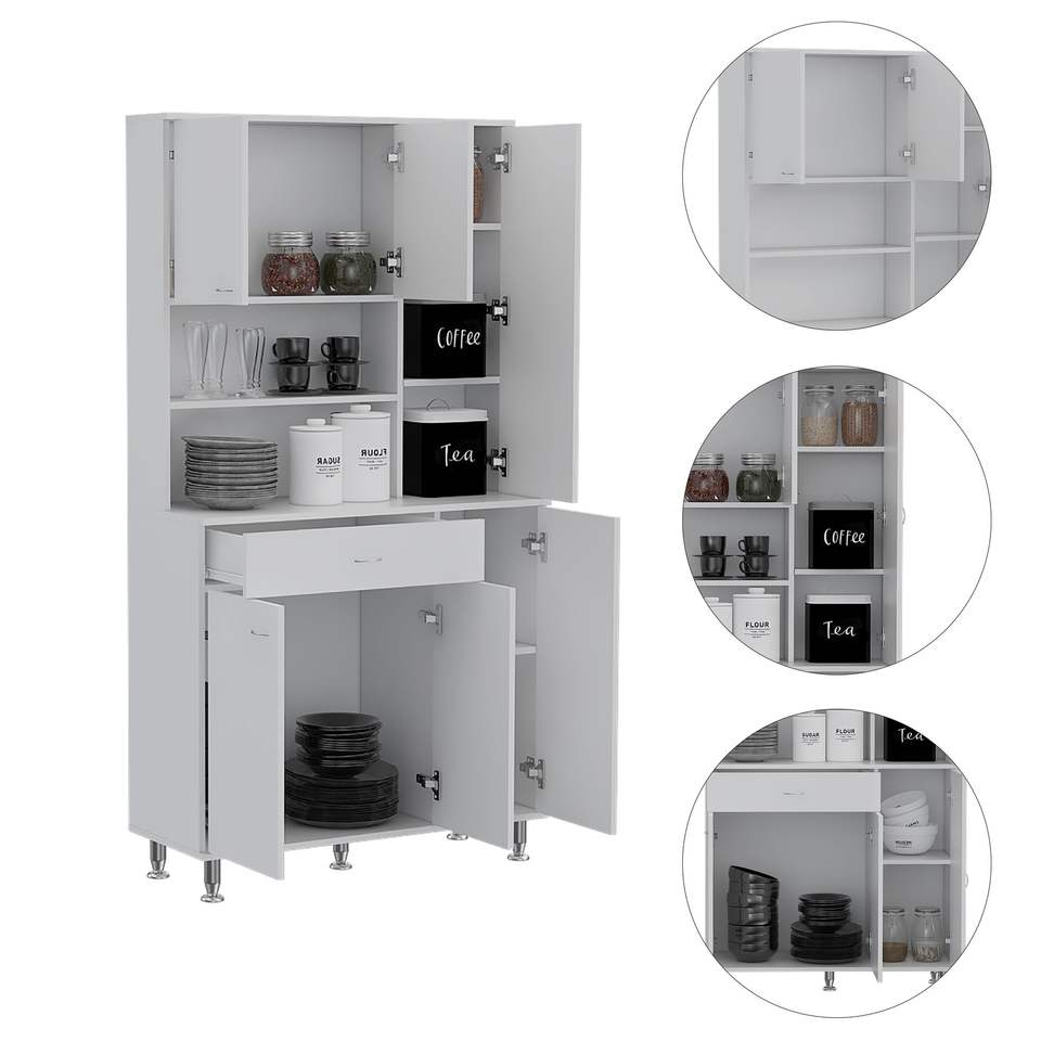 Armadio Dispensa da Cucina Bianco da 90 Pollici con Due Ripiani Aperti e Un Cassetto, Disponibili Diverse Opzioni di Armadi