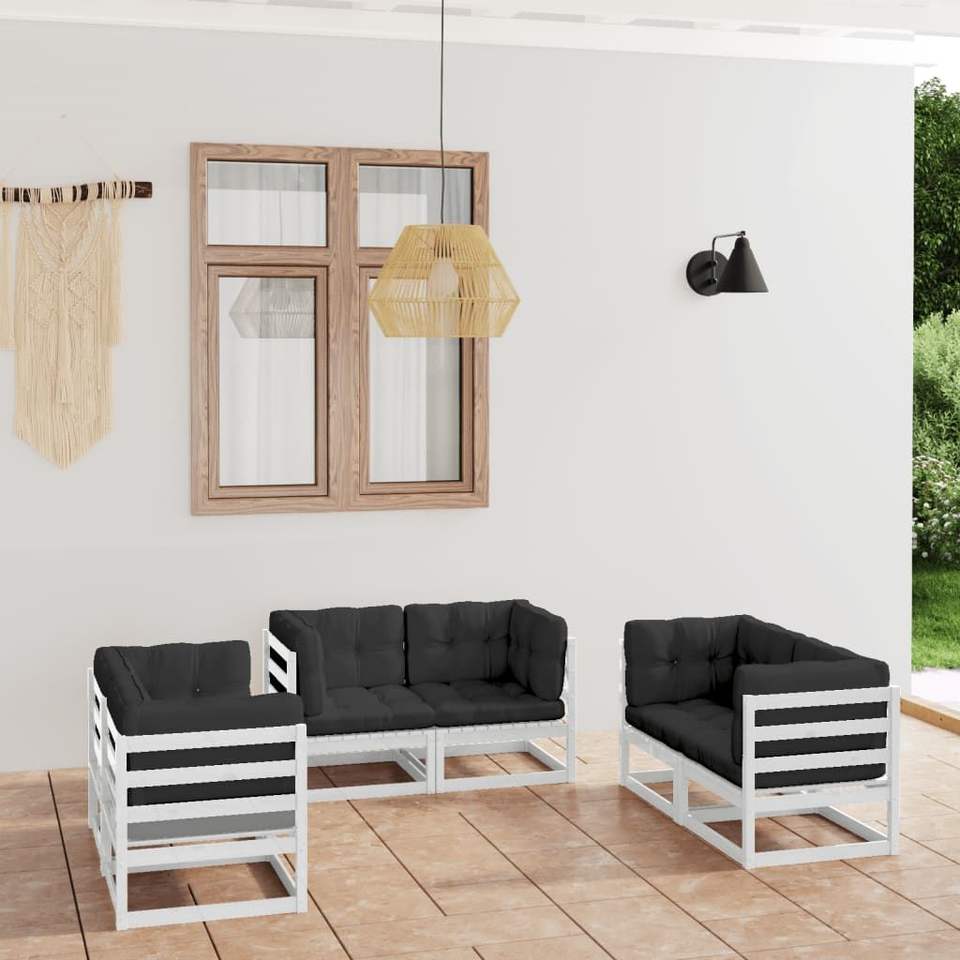 Set Lounge da Giardino Bianco e Antracite 4 Posti, Arredamento Moderno da Esterno con Struttura in Legno e Design a Pannelli