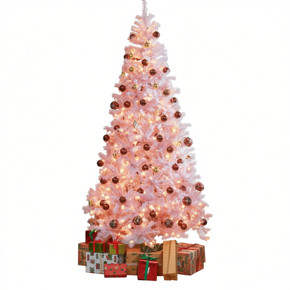 White Artificial Christmas Tree 7.5ft With Warm White Led Lights And Ornaments Indoor Decor For Holiday Celebrations