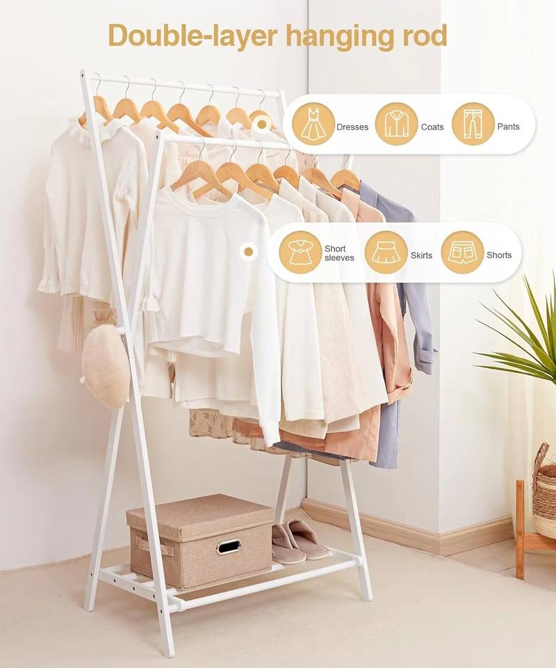 Appendiabiti in bambù bianco portatile con guardaroba pieghevole per camera da letto e uso domestico