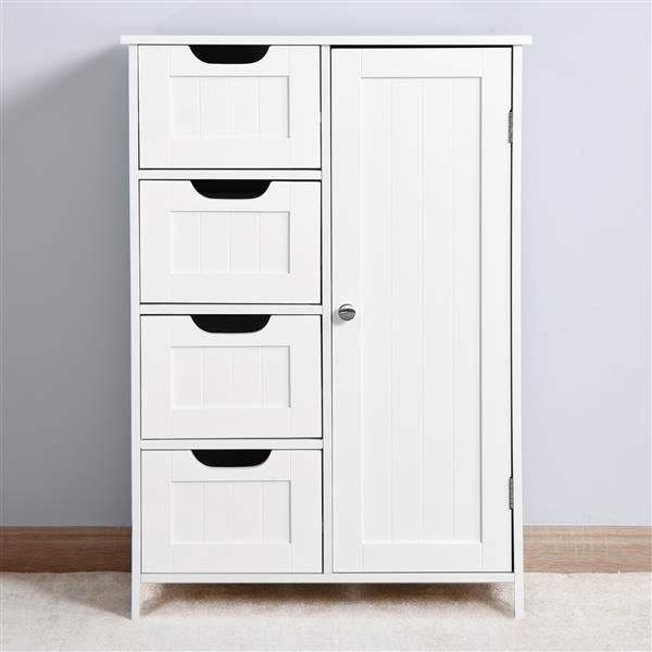 Armadio da bagno bianco con ripiano regolabile e cassetti mobili da pavimento