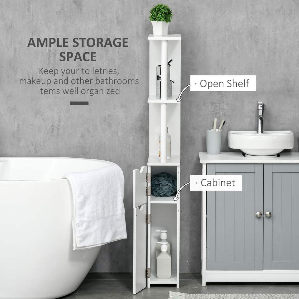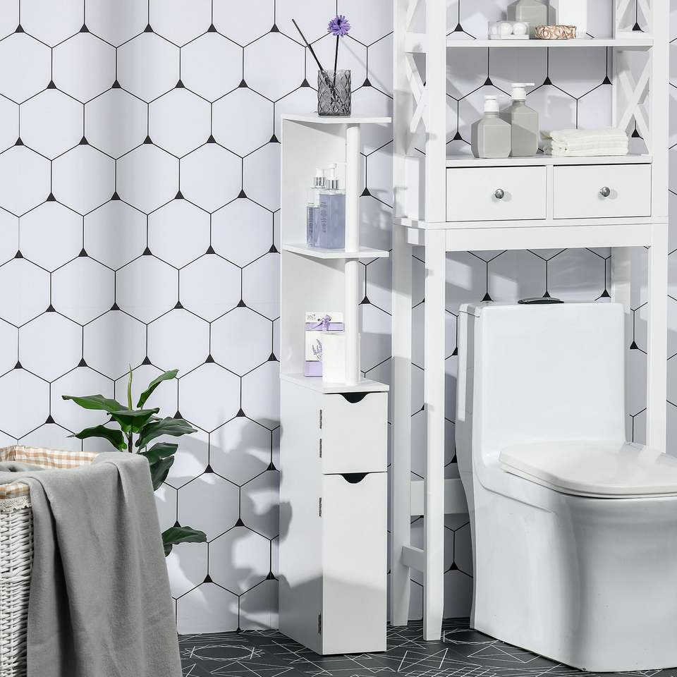 Mobiletto da bagno bianco con ripiani aperti, accessorio per arredamento