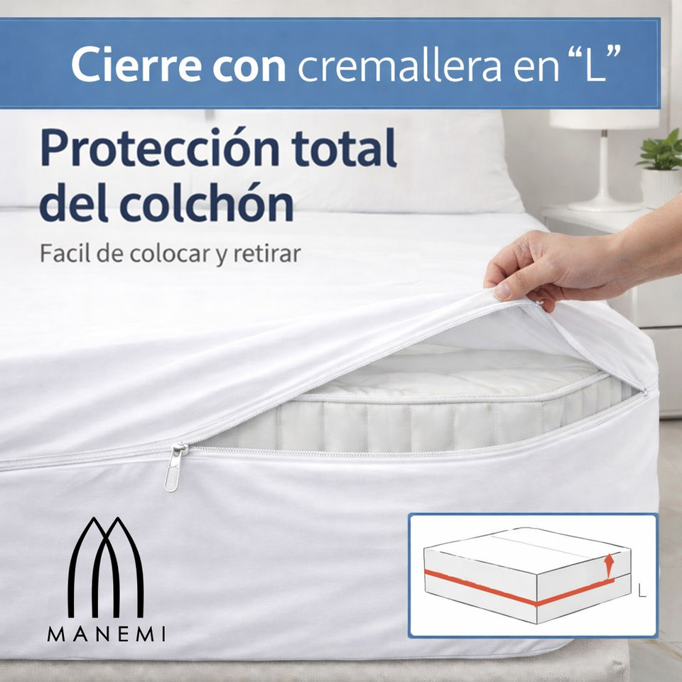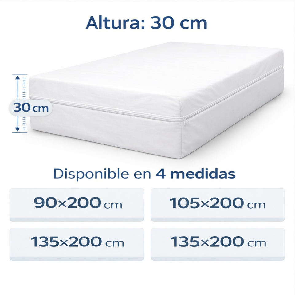 White Bed Mat Cover Zipper 'L' Firm Fit for Mattresses 30cm High Machine Washable Cotton Breathable Plain Minimalist Home Use
