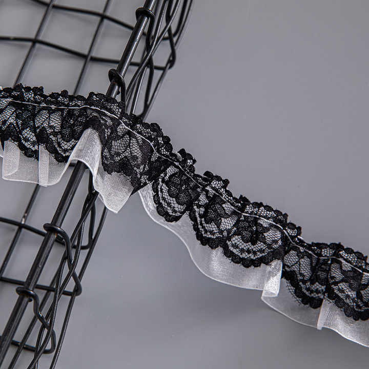 Rifiniture in pizzo bianco nero ricamato con bordo Guipure in poliestere in fibra di latte e nastro di pizzo rifiniture per abiti da sposa