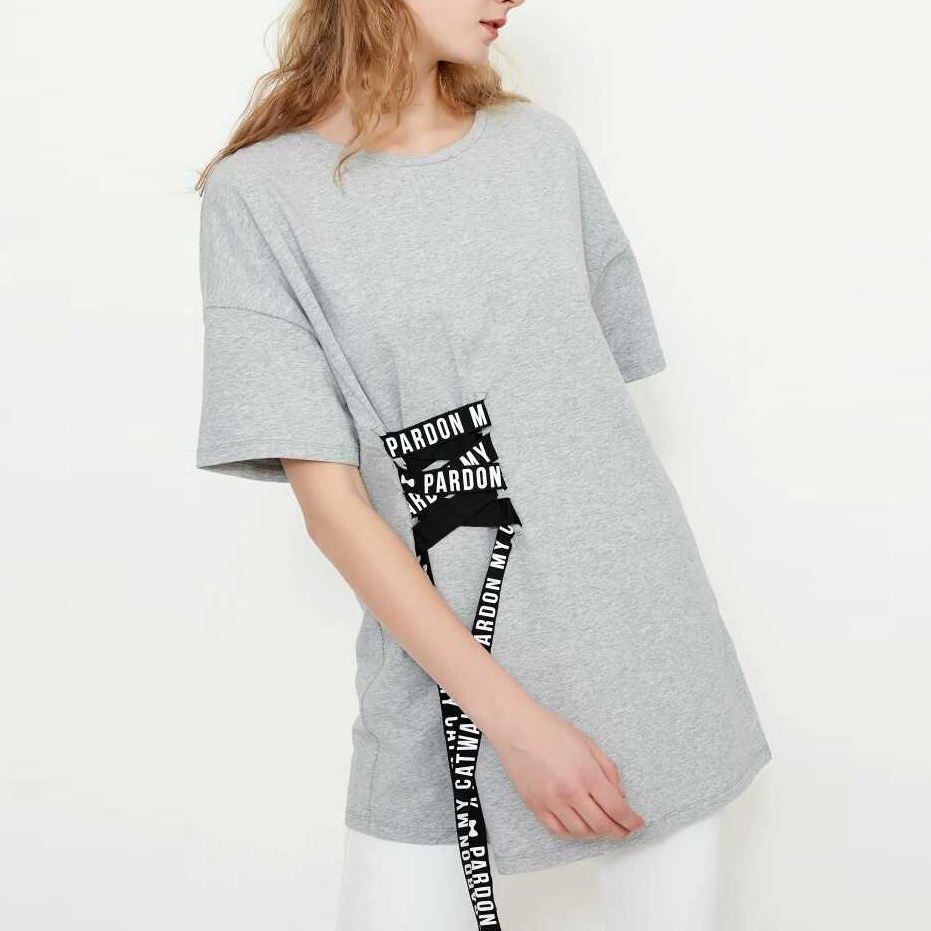 White Black Gry Round Neck Cotton Long Loose T-shirt Made in China