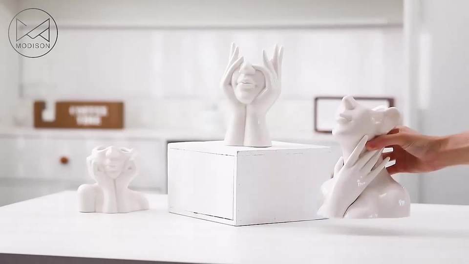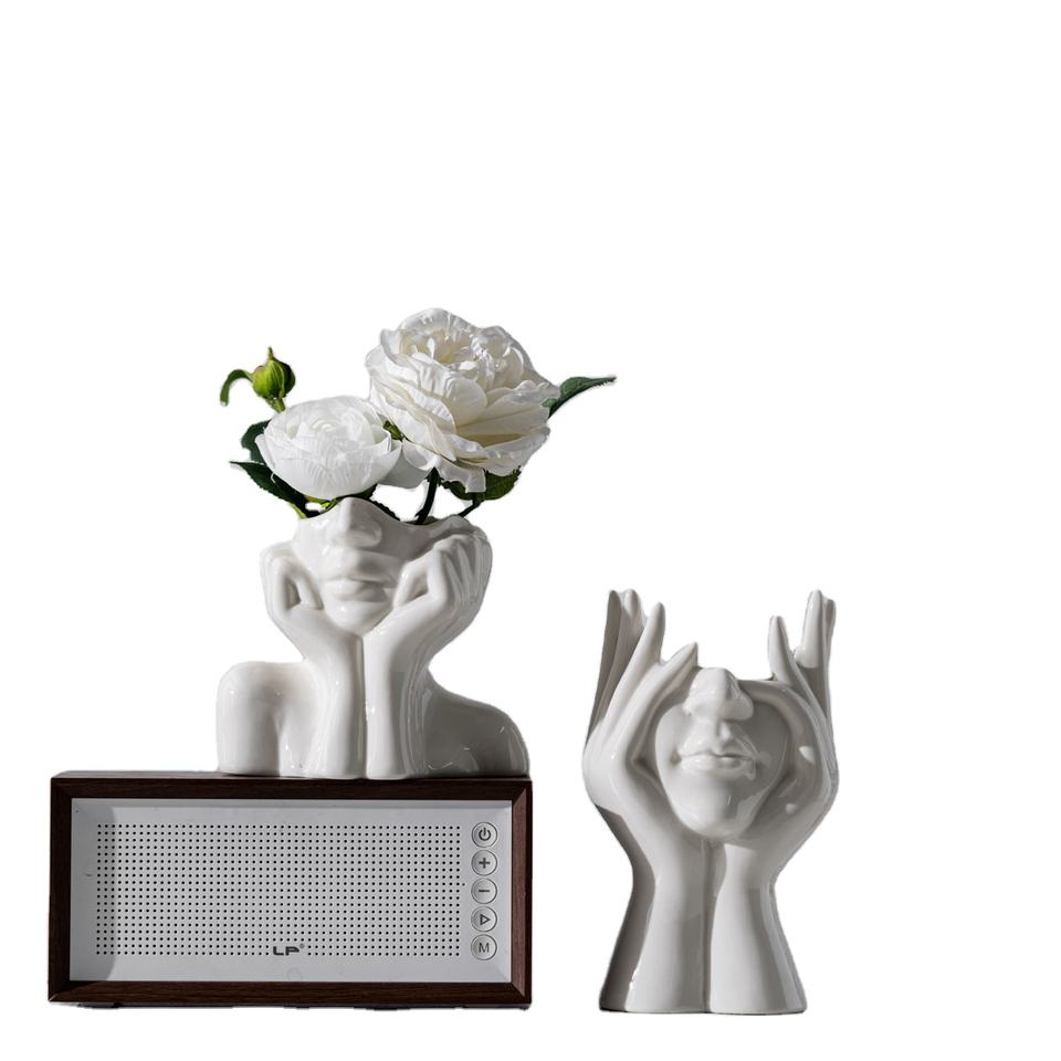 White Body Art Ornament with Hug Face Creative Ceramic Vase for Home Decoration