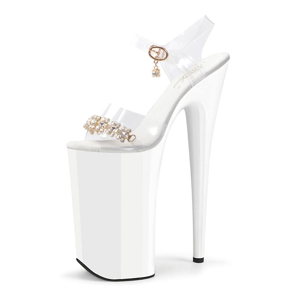 White Bottom 26cm Women Nightclub Clear Rhinestone 10Inch Peep Toe Stripper Pole Dance Shoes Models Sexy Fetish Full Dress Party