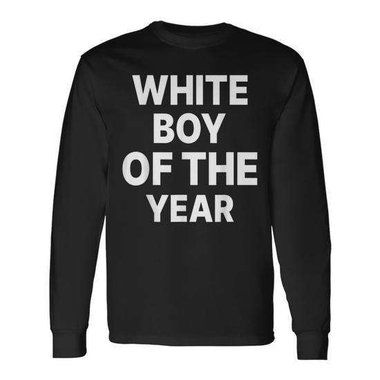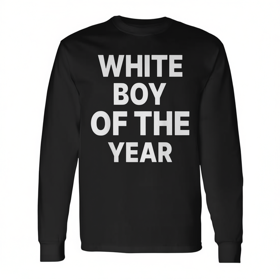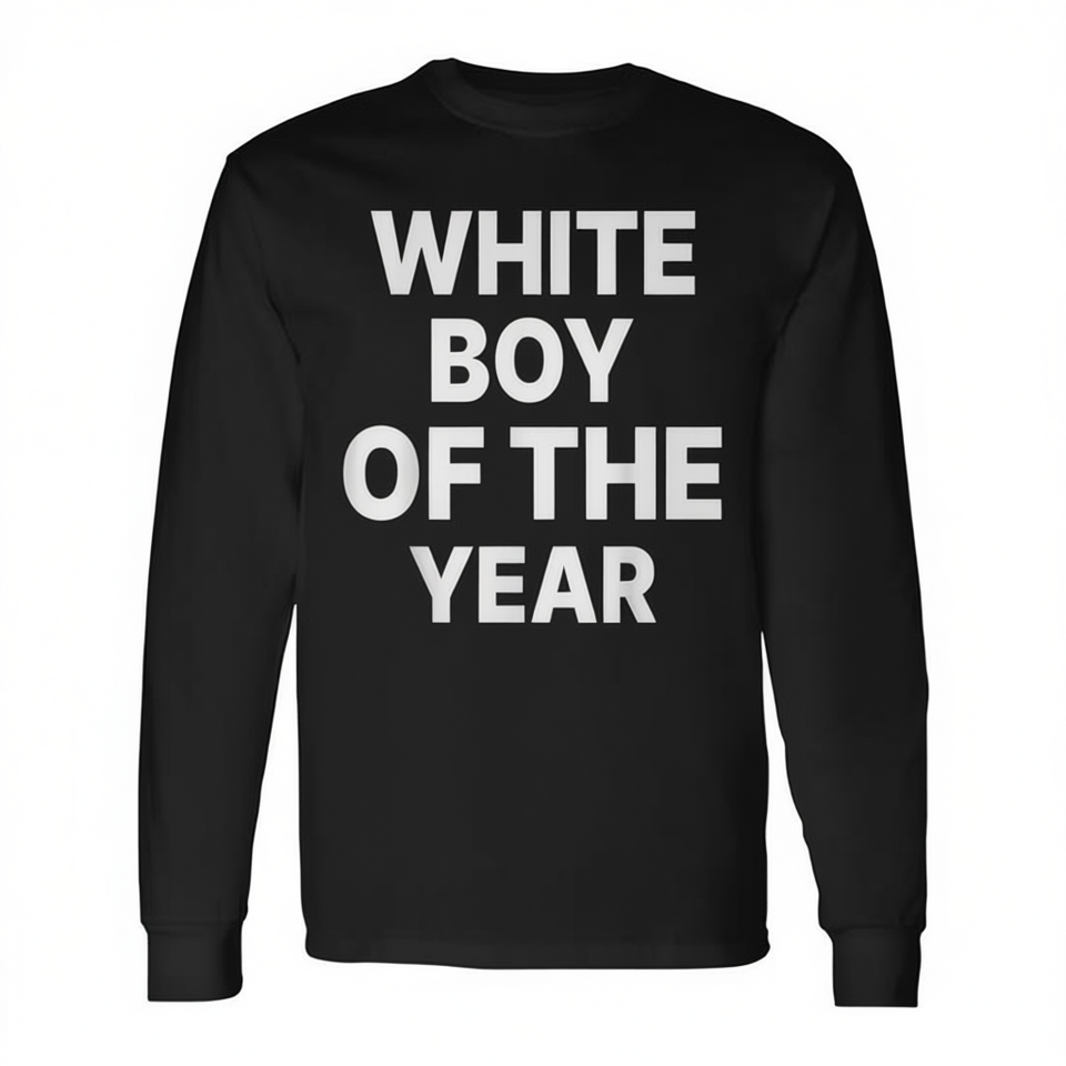 T-shirt a maniche lunghe White Boy Of The Year, girocollo unisex per adulti, stampa serigrafica promozionale