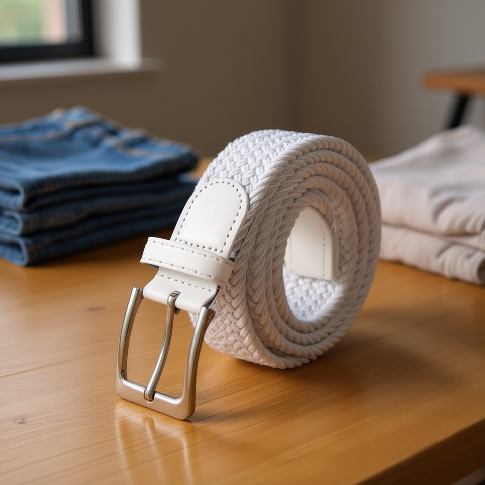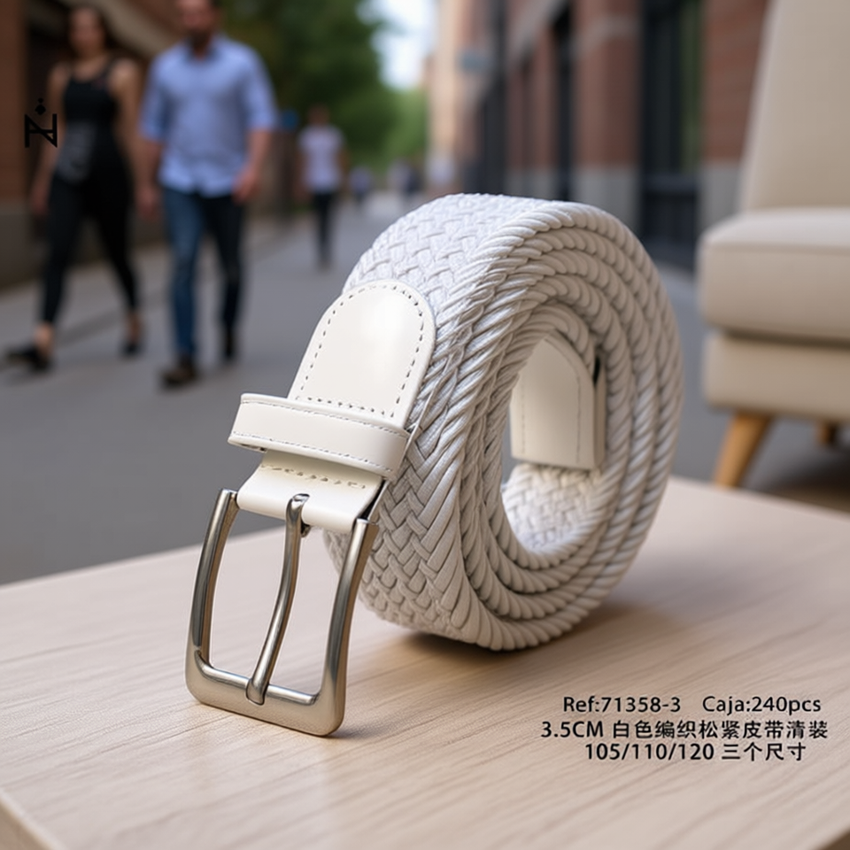 Cintura in pelle elastica intrecciata bianca Angelina 3,5 cm, taglie 105/110/120, abbigliamento casual per uomo e donna