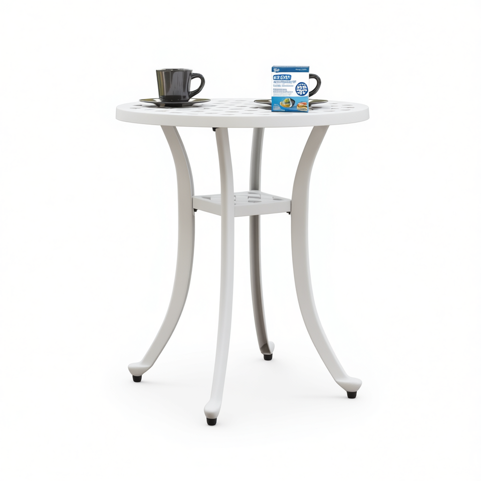Tavolo da Patio in Alluminio Pressofuso Bianco, Diametro 18,9 Pollici, per Uso Esterno, Design Contemporaneo e Durevole