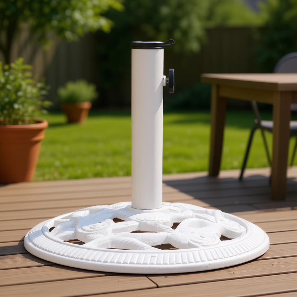 Base per Ombrellone da Patio in Ghisa Bianca, Rotonda 15.7 Pollici, Arredamento Tradizionale da Esterno