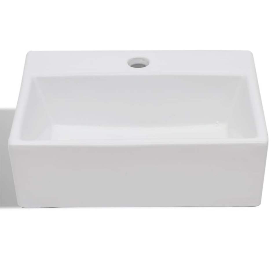 Lavello da bagno in ceramica bianca con foro per rubinetto