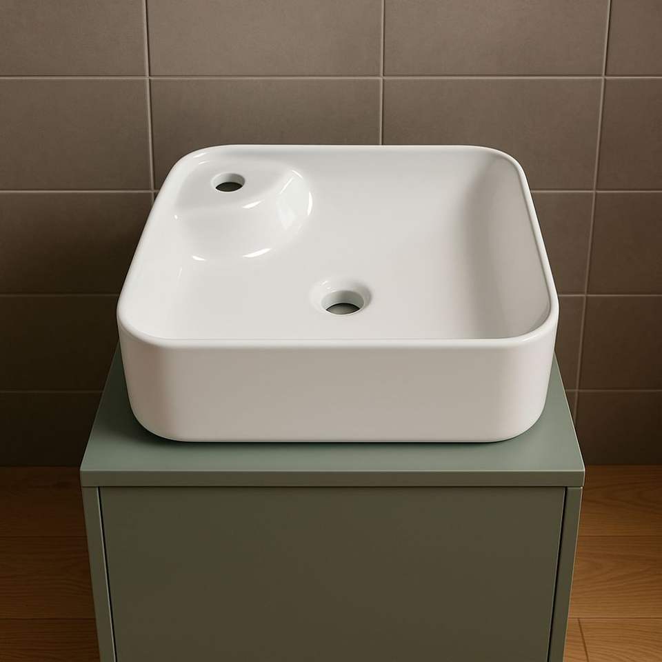 Lavello da appoggio in ceramica bianca 43x43x12 bagno arredo essenziale
