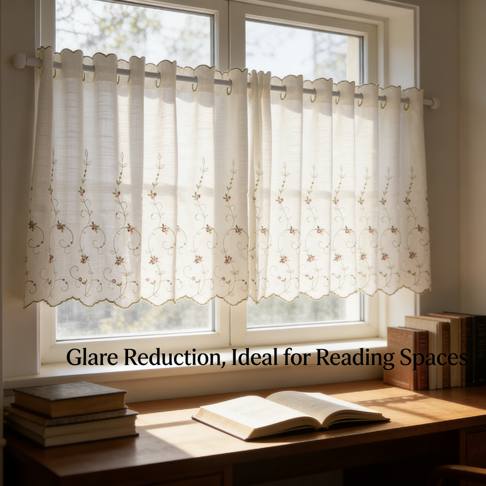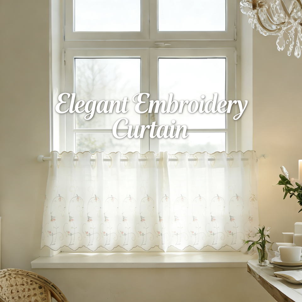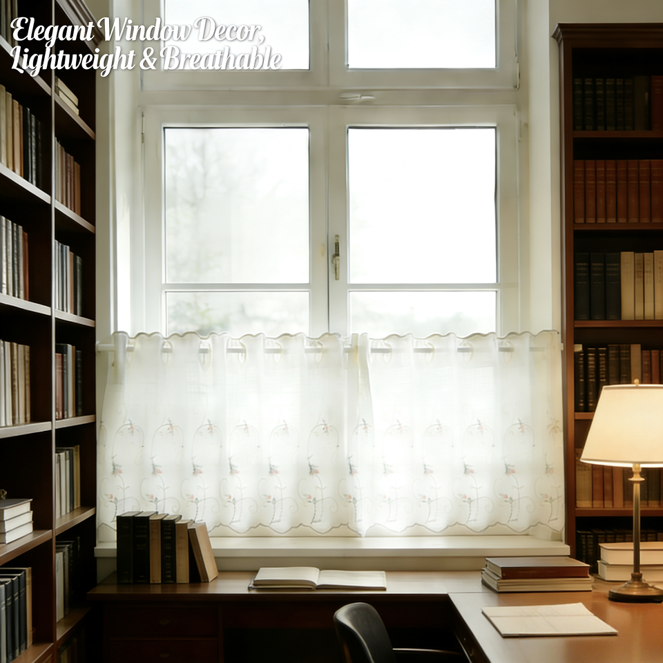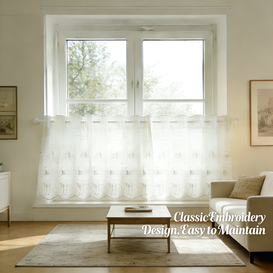 Tenda a Mezza Altezza in Tessuto Bianco, Stile Retrò Ricamato, Traslucida per Porta, Finestra della Cucina o Piccola Finestra