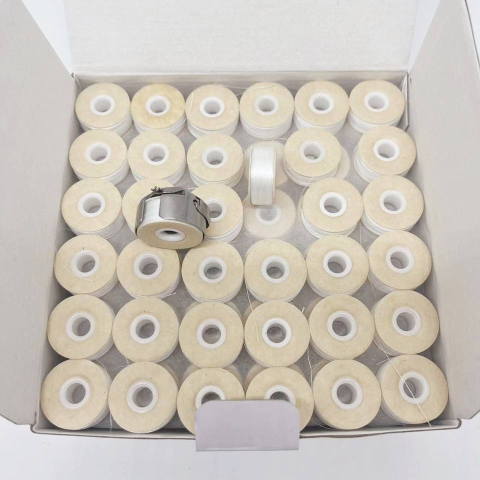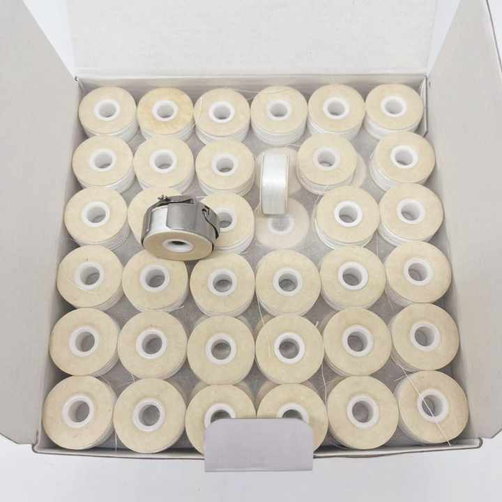 Bobine di Filo per Ricamo in Poliestere Tipo L, Pre-avvolte, Colore Bianco, Carta 75d su Entrambi i Lati