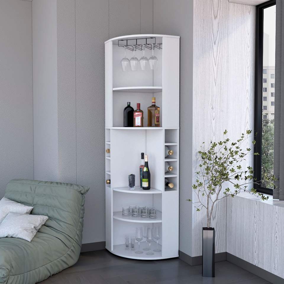 Mobile Bar Angolare Bianco con 5 Grandi Ripiani per Arredamento Soggiorno