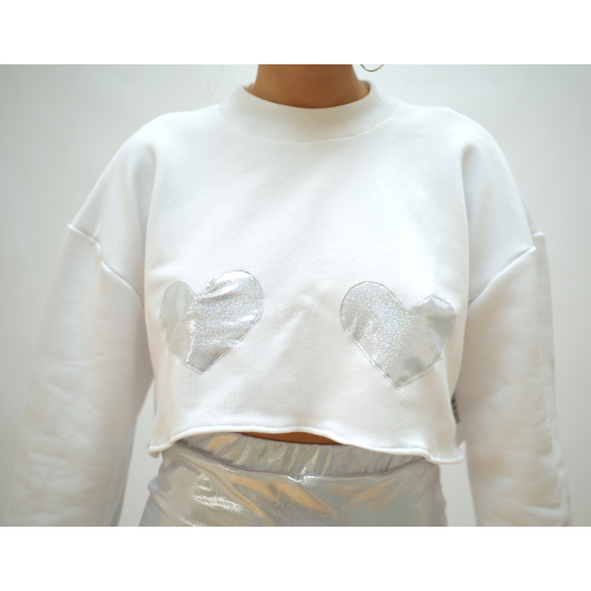 Maglione bianco argento metallizzato cuori