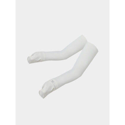 White Cycling Arm Sleeves with 99% UV Protection Protective Banding on Back of Hand